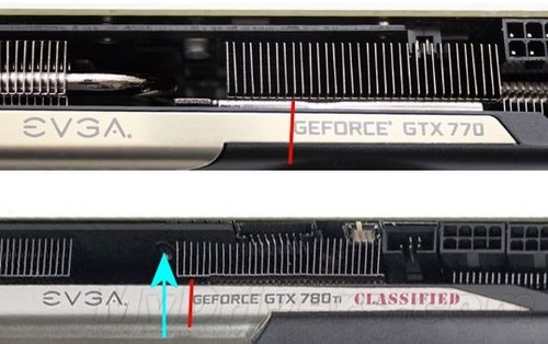 具體是什么型號的線卡不知道,但是注意GeForce字樣的位置,對比EVGA現(xiàn)有的顯卡可以看出它明顯偏左,意味著名字會比較長,甚至略微超過了GeForce GTX 780 Ti Classified。