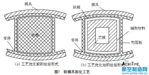 針對上述問題,我們經(jīng)過反復(fù)試驗,在工程化生產(chǎn)中不斷改進,將軟模共固化工藝優(yōu)化為圖1(b)所示形式,利用這種工藝方案連續(xù)生產(chǎn)300多架份的復(fù)合材料產(chǎn)品,質(zhì)量一直穩(wěn)定。