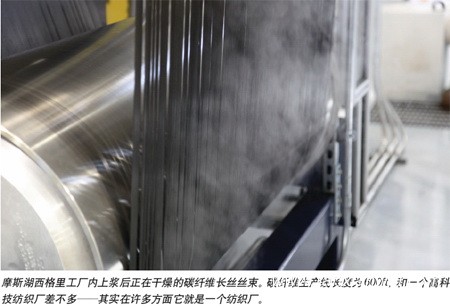 碳纖維生產(chǎn)需要消耗大量的電能,這也是碳纖維增強(qiáng)復(fù)合材料高成本的原因之一,而傳統(tǒng)耗時(shí)的熱壓罐式生產(chǎn)工藝也是這家汽車制造商急切想摒棄的。摩西湖市的工廠有兩條183m長的生產(chǎn)線,產(chǎn)線上的多重電加熱氧化和碳化爐用于將聚丙烯腈聚合物原料的絲束,也稱為原絲,轉(zhuǎn)換成鍵合在一起的碳原子晶體。