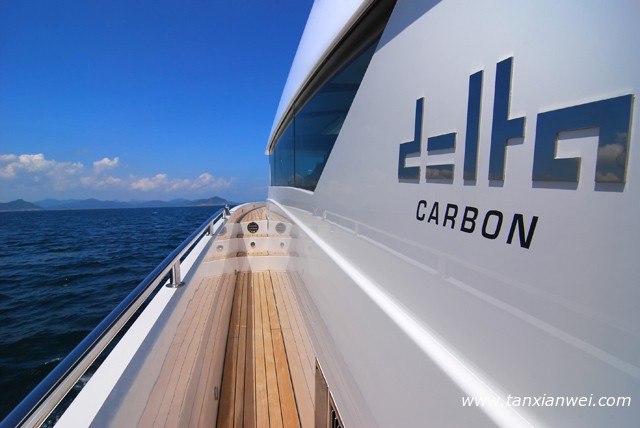 由瑞典 Delta Powerboats 公司推出的 Delta 54 Carbon Cruiser 游艇已于今年五月在香港首發(fā),并將于今年10月在深圳首次亮相中國內(nèi)地。作為全球首款全碳纖維豪華游艇,Delta 54 使用的材質(zhì)近似蘭博基尼超級跑車,重量不僅比同型游艇減輕三成而且擁有更快的航行速度,用小馬力就可輕松達(dá)到30節(jié)。