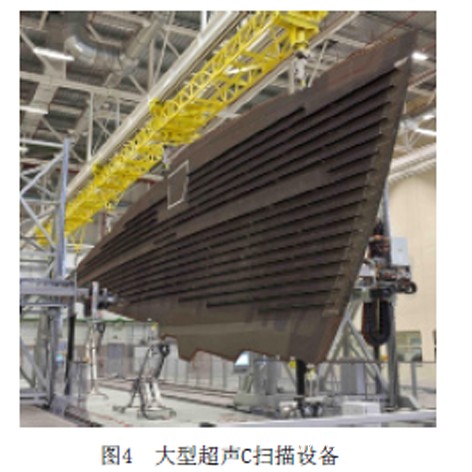 隨著復(fù)合材料在航空結(jié)構(gòu)件上應(yīng)用比例的不斷提高,為保障飛行安全,監(jiān)控復(fù)合材料結(jié)構(gòu)內(nèi)部質(zhì)量受到越來越廣泛的關(guān)注。目前,航空復(fù)合材料無損檢測方法主要有超聲檢測、射線檢測等。大飛機復(fù)合材料檢測涉及到大面積的快速檢測和復(fù)雜結(jié)構(gòu)的檢測,因此需要配置大型C掃描設(shè)備(圖4)和X光無損檢測設(shè)備。