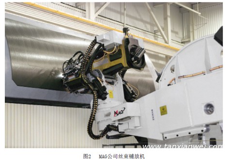美國MAG Cincinnati公司生產(chǎn)了多種VIPER系列的絲束鋪放機,機型已從Viper1200、Viper3000升級到Viper6000,特別適合于高輪廓的結(jié)構(gòu)如整流罩、機身部分、風(fēng)機葉片、桅桿和“C”型梁等。波音787機身47段和48段,A350 XWB機身蒙皮等都采用了VIPER 6000絲束鋪放機。圖2為MAG公司“Viper”系列絲束鋪放機。 內(nèi)容來自123456