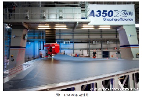 自動鋪帶主要適用于尺寸較大,曲率較為平緩的機翼、尾翼等翼面類結(jié)構(gòu)。經(jīng)過40多年的發(fā)展,自動鋪帶技術(shù)在歐美國家已經(jīng)成熟,并大規(guī)模應(yīng)用于航空復(fù)合材料結(jié)構(gòu)件的制造,如波音777飛機機翼、水平和垂直安定面蒙皮,C-17運輸機的水平安定面蒙皮,波音787機翼蒙皮,A330和A340水平安定面蒙皮,A340尾翼蒙皮,A380的機翼蒙皮和安定面蒙皮,A350機翼蒙皮和中央翼盒,A400M機翼蒙皮等。A400M機翼大梁采用的是自動鋪帶加熱隔膜成型工藝。圖1為A350XWB自動鋪帶設(shè)備。 123,123
