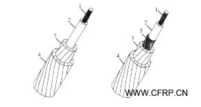 (1、碳纖維增強環(huán)氧樹脂復合材料內(nèi)芯;2、玻璃纖維增強環(huán)氧樹脂復合材料外芯;3、第一層梯形鋁導線;4、第二層梯形鋁導線;5、保護性涂層或膜;)