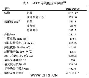 表 2 列出了 ACCC導線的技術參數(shù) ,以供制造和使用時參考。