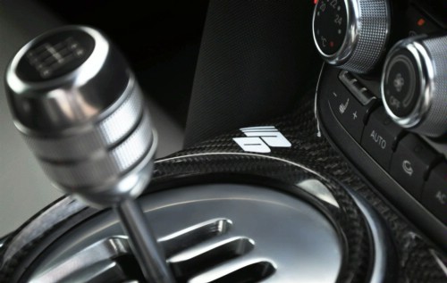 R8內(nèi)飾中,中控臺(tái)、手剎等都被換成了碳纖維。