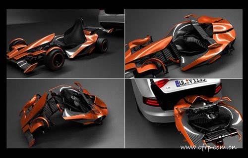 盡管卡丁車有這么多的好,但是我們在現(xiàn)實生活中駕駛卡丁車的時候,總是會有些失望。簡陋的外形甚至可以說沒有任何造型可言,臟兮兮的兩沖程發(fā)動機散熱片上掛滿了油污,或許唯一干凈的就是后軸上的那個锃光瓦亮的剎車盤了!為什么不能有些好看的卡丁車出現(xiàn)在場地上呢?最近由美國佛羅里達洲的一位設(shè)計師卡丁車就綜合了卡丁車的一切優(yōu)點,同時又為卡丁車提供了全新的外觀設(shè)計,效果是相當(dāng)不錯!