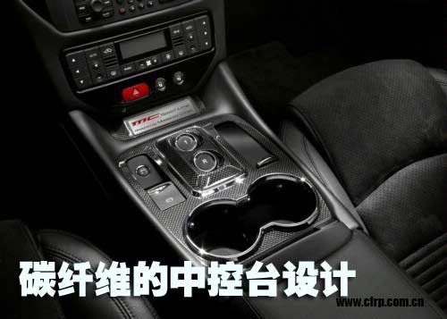 瑪莎拉蒂GranTurismo限量版采用了碳纖維材料的后視鏡、門(mén)把手,內(nèi)飾也采用了輕量化的碳纖維材料,并采用鋁合金賽車(chē)踏板。其中中控臺(tái)的碳纖維設(shè)計(jì)也別具一格。