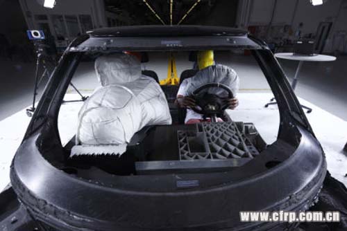 大部分采用預(yù)浸料工藝,地板、A柱及碰撞吸能盒采用RTM工藝制成。后部部件采用SMC成型工藝制成。