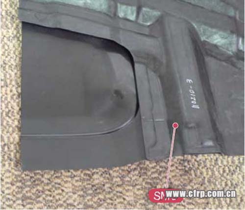 制造雷克薩斯LFA駕駛室時采用了三種成型方法。側(cè)欄及前部艙壁等具有中空構(gòu)造的主要骨架采用了預(yù)浸料工藝,前部碰撞吸能盒、A柱及地板采用了RTM工藝,后部部件采用了以碳纖維加固的SMC(片狀模壓料)成型工藝(圖11)。