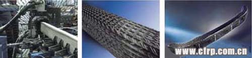 由SGL Kumpers負責(zé)成型。左起分別為August Herzog公司的編織機、編織物預(yù)成型坯、RTM成型品。