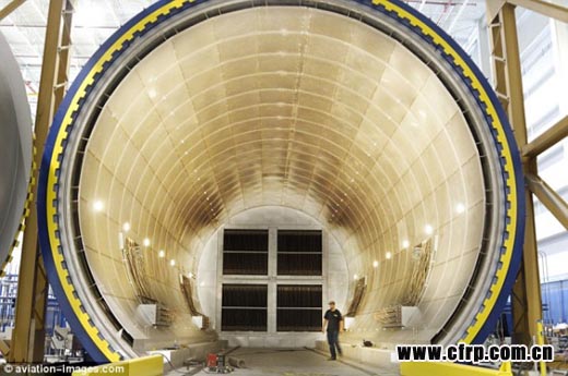 金屬機身一般由長方形金屬板構成,然后用成千上萬個鉚釘固定,使用合成材料,整個機身的管狀截面可以作為整體制造出來——基本上是在一個巨型爐子(稱為高壓釜)燒制碳合成材料。接著,只要通過更少的扣件就能將更少的部件固定。這使得波音公司可以重新考慮整個制造過程。波音不是像以前那樣,將機身結構組裝完畢,然后再安裝所有的布線、管線和其他機載系統(tǒng),而是將機身整個部分外包,造好以后再在埃弗雷特進行組裝。