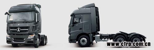 北奔在今年北京車展上展示的V3輕量化牽引車(H09)自重低于8噸。通過優(yōu)化并匹配動力傳動、制動、轉(zhuǎn)向、車電及發(fā)動機輔助系統(tǒng)等不同成本的系列化模塊,組合形成4x2、6x2、6x4、8x4四種驅(qū)動型式的牽引車、載貨車、自卸車系列車型。