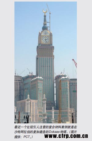 “設計公司和工程公司需要越來越多有趣的結構。”多軸向增強材料提供商FORMAX的總經(jīng)理Oliver Wessely解釋說:“人們正在建筑上嘗試各種有意思的設計。我們能夠明確看到市場的增長,特別是在中東地區(qū)。中東地區(qū)的建筑風格是非常華麗的——他們擁有眾多的拱形結構和圓形屋頂。我認為,這種結構適合采用復合材料,而西方的建筑風格相對來說則比較單調(diào)乏味。”