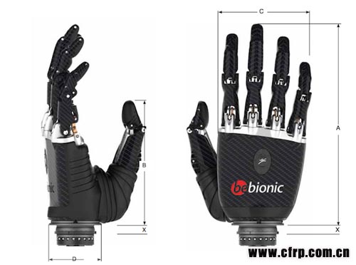 這種碳纖維義肢叫BeBionic3肌電流機(jī)械手臂(BeBionic3 myoelectric hand),由英國公司RSLSteeper制造,主體由碳纖維打造而成,加上鋁合金關(guān)節(jié),質(zhì)輕但堅韌,而且功能遠(yuǎn)勝一般產(chǎn)品。