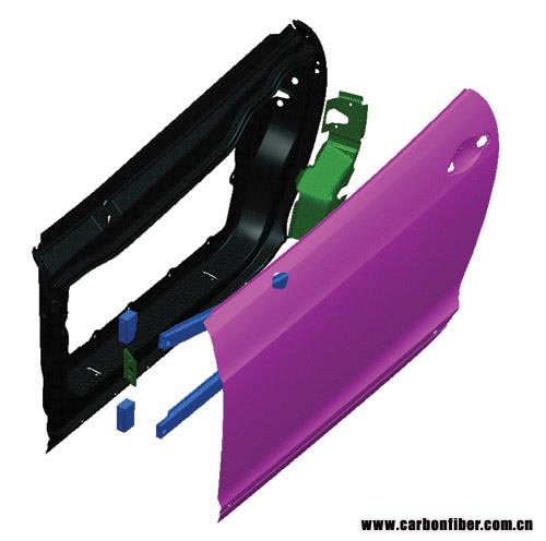 圖3 作為汽車復(fù)合材料領(lǐng)域的資深專家,Antony Dodworth表示,將碳纖維復(fù)合材料整合到轎車或卡車中的最大障礙主要發(fā)生在設(shè)計(jì)和工程開發(fā)階段。例如,一個(gè)復(fù)合材料的車門(上圖),能夠使用比金屬車門(下圖)少得多的部件被設(shè)計(jì)和制造出來