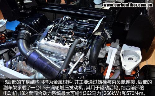 整個(gè)乘員艙的結(jié)構(gòu)由多層碳纖維復(fù)合材料拼合而成,輕量化和高強(qiáng)度是它最大的特點(diǎn),這樣的設(shè)計(jì)類似于F1賽車中駕駛艙的單體橫造結(jié)構(gòu)(由碳纖維復(fù)合材料構(gòu)成),而最終的效果就是i8的車身重量不到1.5噸。 本文來(lái)自123