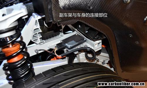 與乘員艙前部相連的是Drive結(jié)構(gòu),它主要為金屬材質(zhì),用于承載電動(dòng)機(jī)、前懸架以及轉(zhuǎn)向系統(tǒng)等部件。