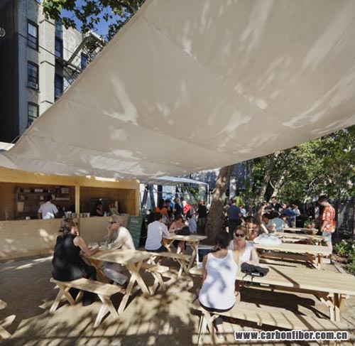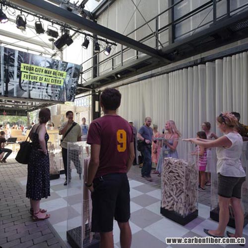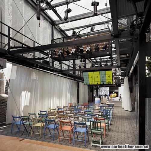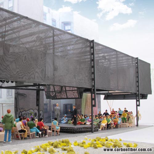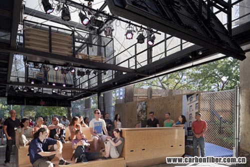 The first-ever building to have a carbon fibre structure is a mobile studio-cum-stage by Japanese architects Atelier Bow-Wow, which just opened in New York.