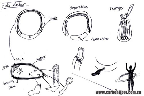 來自伊萊克斯設(shè)計大賽的獲獎作品碳纖維Hula Washer(呼啦圈洗衣機)是一款既可以讓你強健身體又可以順便清洗一下衣物的超級創(chuàng)意產(chǎn)品。