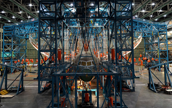 Outside of this story, but still within the Boeing scope…Boeing put their new 787 Dreamliner under the “Ultimate-Load Wing Test”. This is where load is applied to the airframe (while on the ground) to replicate 150 percent of the most extreme forces the airplane is ever expected to experience while in service. During the test, the wings flex upward of approximately 25 feet.