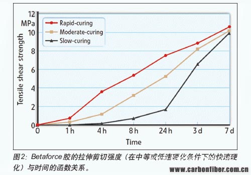 對于粘結中等強度的基材而言,低模量或高模量的雙組分聚氨酯膠均可采用。一般而言,粘結劑的目的是為了優(yōu)化加工過程。通常情況下,這可通過快速粘接,迅速達到操作強度以及(但不僅限于)最少的表面處理要求來實現。傳統(tǒng)的膠粘劑有的時候包括費時的、成本高昂的基材預處理。這可能是物理性的預處理,如采用等離子,或者在某些情況下,采用有必要進行監(jiān)測排放和安裝萃取系統(tǒng)的偶聯(lián)劑的化學活性來實現。有了新型高強度Betaforce粘接技術,纖維增強復合材料就能不經預處即得到高強度粘結。
