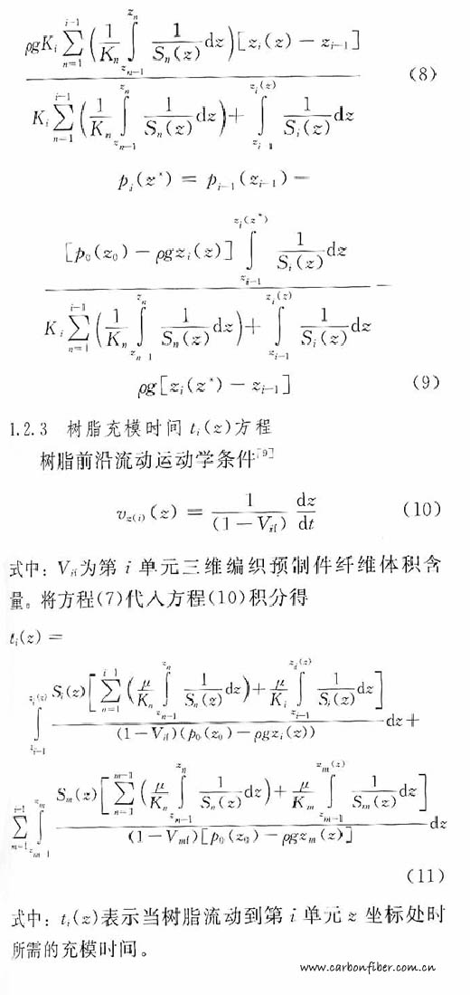 (3)對于加工特定結(jié)構(gòu)的三維編織變截面薄壁殼體復(fù)合材料制件,借助于方程(7)、(8)、(9)和(11)的理論頂測結(jié)果,可合理設(shè)計RTM充模工藝參數(shù)。