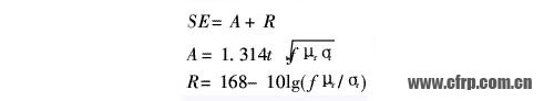 根據(jù)Schelkunoff電磁屏蔽理論,材料的電磁屏蔽效能SE由吸收損耗A、反射損耗R和內部反射損耗B組成。當A大于10dB時,B可以忽略,則屏蔽效能是A和R之和,用公式表示為: