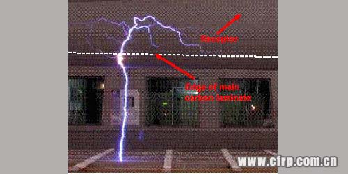 由上圖知,沒有安裝分流器的主碳纖維層的前緣比接受器更輕易受到閃電襲擊