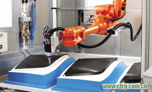可以使用機器人來可靠地處理切割織物、纖維氈,以及預(yù)制件。預(yù)制件成型中心可以作為一個單獨的單元來運行,也可與壓制工藝一起結(jié)合在產(chǎn)線上。