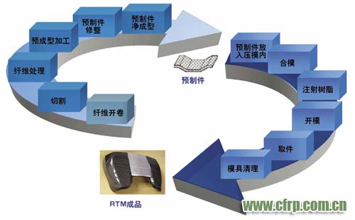 航空工業(yè)目前正采用樹脂傳遞模塑成型工藝(RTM),進行大型高強度結(jié)構(gòu)件的生產(chǎn)。然而,其生產(chǎn)效率很低,有時還需大量的手工作業(yè)。在汽車的制造過程中,采用RTM工藝進行零部件的生產(chǎn),主要是為了達到更好的視覺效果,并且只用于小批量生產(chǎn)的頂級轎車中。若能為量化生產(chǎn)開發(fā)出一條可靠的自動化RTM生產(chǎn)線,則纖維增強塑料(FRP)將能夠更加廣泛地應(yīng)用于汽車高強度承重結(jié)構(gòu)件的生產(chǎn)。