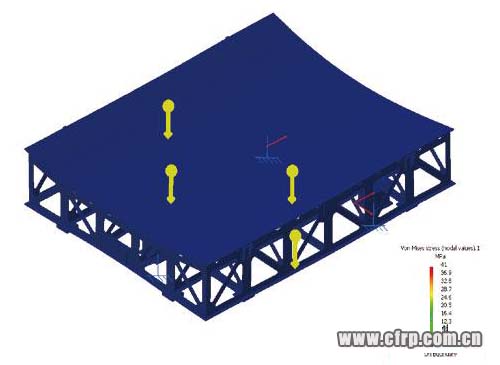鋪貼模具加鋪層重量,以及鋪帶頭的壓力作用在模具底座的支撐點(diǎn)上。