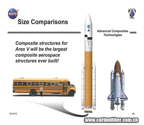 圖6 美國(guó)國(guó)家航空航天局(NASA)的運(yùn)載火箭(先前的“戰(zhàn)神V”)可以成為因采用OOA預(yù)浸料而節(jié)省大筆金錢的一個(gè)很好例證。該項(xiàng)目如果采用12m×24m的熱壓罐,估計(jì)成本達(dá)到$1億。NASA的復(fù)合材料與結(jié)構(gòu)高級(jí)顧問Mark Shuart相信,一旦直徑達(dá)10m的火箭筒身部分被證明可以使用OOA工藝,那么航空航天復(fù)合材料的制造將發(fā)生極大的變化。圖片來源:NASA