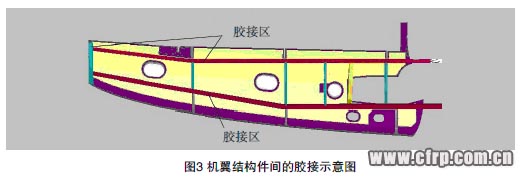 (7)方向舵左右兩側蒙皮、加強盒采用二次膠接成一個整體。