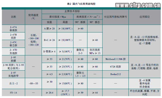 優(yōu)良的航空結構膠粘劑仍是21世紀制造先進戰(zhàn)斗機和民用飛機不可缺少的重要材料。隨著復合材料在飛機結構中的應用不斷擴大,國內(nèi)外航空用結構膠的應用日趨廣泛,新一代復合材料飛機制造技術的發(fā)展又對膠接技術提出了更高的要求:
