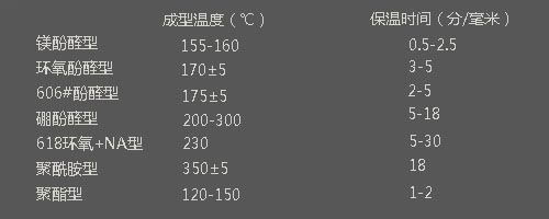幾種典型模壓料的成型固化溫度和保溫時(shí)間如下: