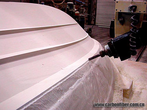根據(jù)計算機(jī)數(shù)據(jù)進(jìn)行的CNC加工是非常精確的。母模生產(chǎn)用的可加工復(fù)合材料模具板和板材來自不同的制造商。這些產(chǎn)品范圍從聚氨酯泡沫、合成環(huán)氧樹脂到碳泡沫。這些材料粘結(jié)在一起后,被加工成特定的模具形狀,然后將其密封防止層壓樹脂滲透,并用雙馬來酰亞胺或環(huán)氧層壓板包覆,最后才進(jìn)行機(jī)加工。