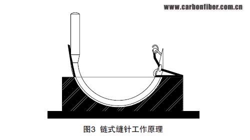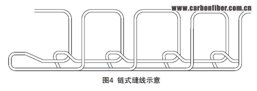 (2)鏈?zhǔn)娇p合??p頭固定于懸臂機(jī)械手上,依靠機(jī)械手來完成復(fù)雜的縫合動(dòng)作。因此,鏈?zhǔn)娇p合可以完成所有復(fù)雜曲面預(yù)制體的縫合,但由于縫針為彎月形縫針,所以鏈縫通常適用于相對(duì)較薄的預(yù)制體。鏈?zhǔn)娇p合的最大縫合厚度為10mm,當(dāng)纖維預(yù)制體厚度小于1mm,且零件型面曲率較大時(shí),在雙面縫合工作平臺(tái)的限制下無法使用鎖式縫合;而對(duì)于Tufting縫合,因?yàn)榱慵^薄,縫線不易留在零件內(nèi),所以對(duì)于此種預(yù)制體的縫合最好采用鏈?zhǔn)娇p合方式。 本文來自123