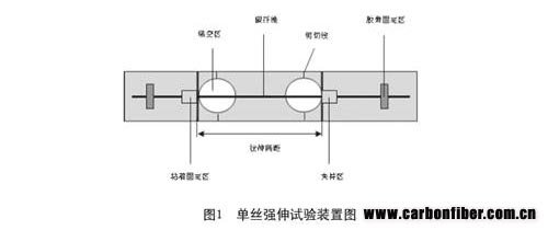 碳纖維單絲的強(qiáng)伸試驗不同于其他柔性纖維的單纖維試驗。碳纖維不能直接夾持在預(yù)定隔距的兩夾頭間。其原因很簡單,一是纖維的脆性使整個夾持成功率極低,纖維往往在夾持過程中因彎折而斷裂。二是即使夾持成功,夾持端會對纖維產(chǎn)生損傷,使纖維的斷裂發(fā)生在鉗口處,所測數(shù)據(jù)不能反映纖維的真實特性。因此,碳纖維單絲的強(qiáng)伸試驗首先要求將單根碳纖維粘貼于特制的試樣卡上,
