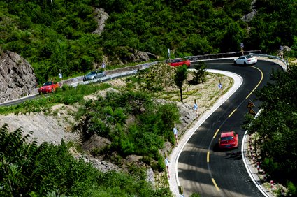 20km之后車隊擺脫了束縛駛?cè)敫咚?,將Drivelogic換檔響應(yīng)調(diào)到最高級別,此時發(fā)動機轉(zhuǎn)速要拉到接近紅線才會被迫晉升檔位。需要超車或全油門加速時變速器甚至?xí)B降3-4檔以輸出到最大扭矩。直接的講,Drivelogic系統(tǒng)的最高級是最暴力、最直接的。變速器對動力釋放變得毫無保留,只要我需要它便會幫助我一起壓榨出更多。 copyright 123456