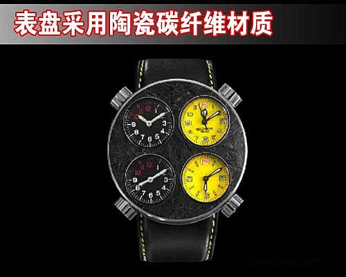 他們的靈感來自四個缸體的手表獨具創(chuàng)意,四個表盤分別采用了四種不同的瑞士機械走時系統(tǒng),這款陶瓷碳纖維手表的表殼是由Brembo使用同制造制動碟一樣的工序加工出來的,短小的碳纖維中還整合了高強度的陶瓷。